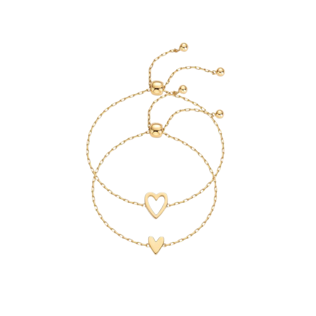 Le bracelet Adorné Bondlet est une façon simple de montrer à quelqu'un que vous tenez à lui. Chaque ensemble comprend deux bracelets : l'un avec un cœur plaqué or massif, l'autre avec un cœur ouvert.